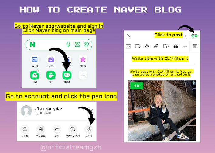 Create a Naver/Daum blog with a Naver account and engage with blogs related to CL. Like,comment and share on your other SNS (Facebook, Twitter etc)