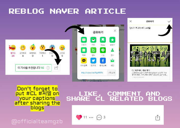 Facebook & Instagram: LIKE and COMMENT with #씨엘 #CL on posts related to CL