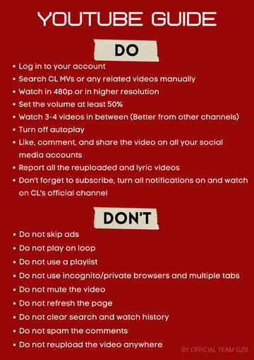 Youtube: Stream CL's videos (MVs, TV Shows, CFs etc and don’t forget to leave positive comments about her.